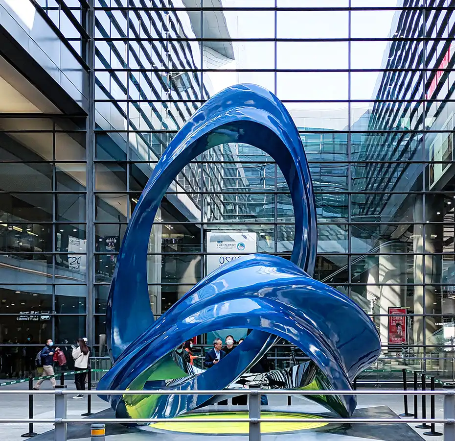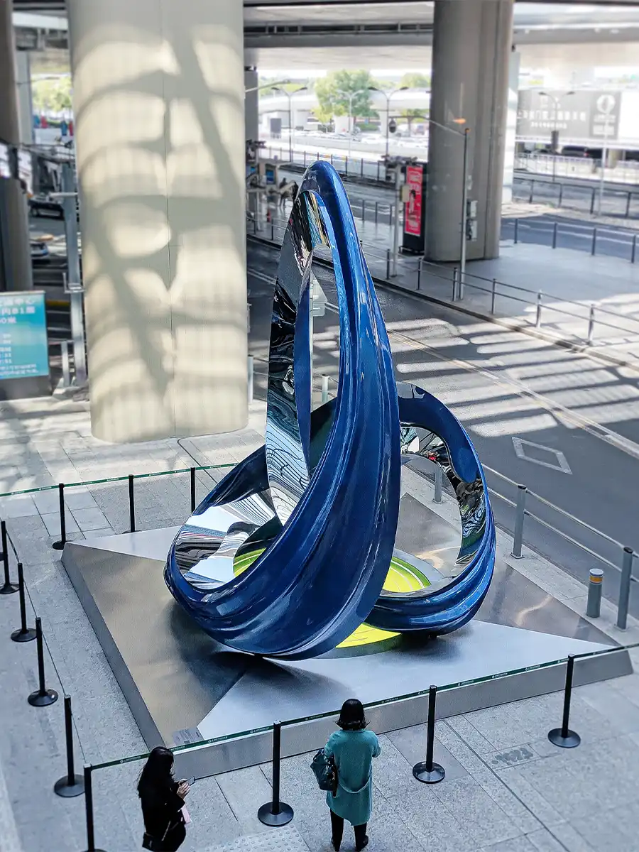 Airport is a bond among time, space and dream, which establishes a strong connection between world and individuals. The sculpture creates a fluent and organic time tunnel basing on the concept of the LOGO of Shanghai Airport Authority.