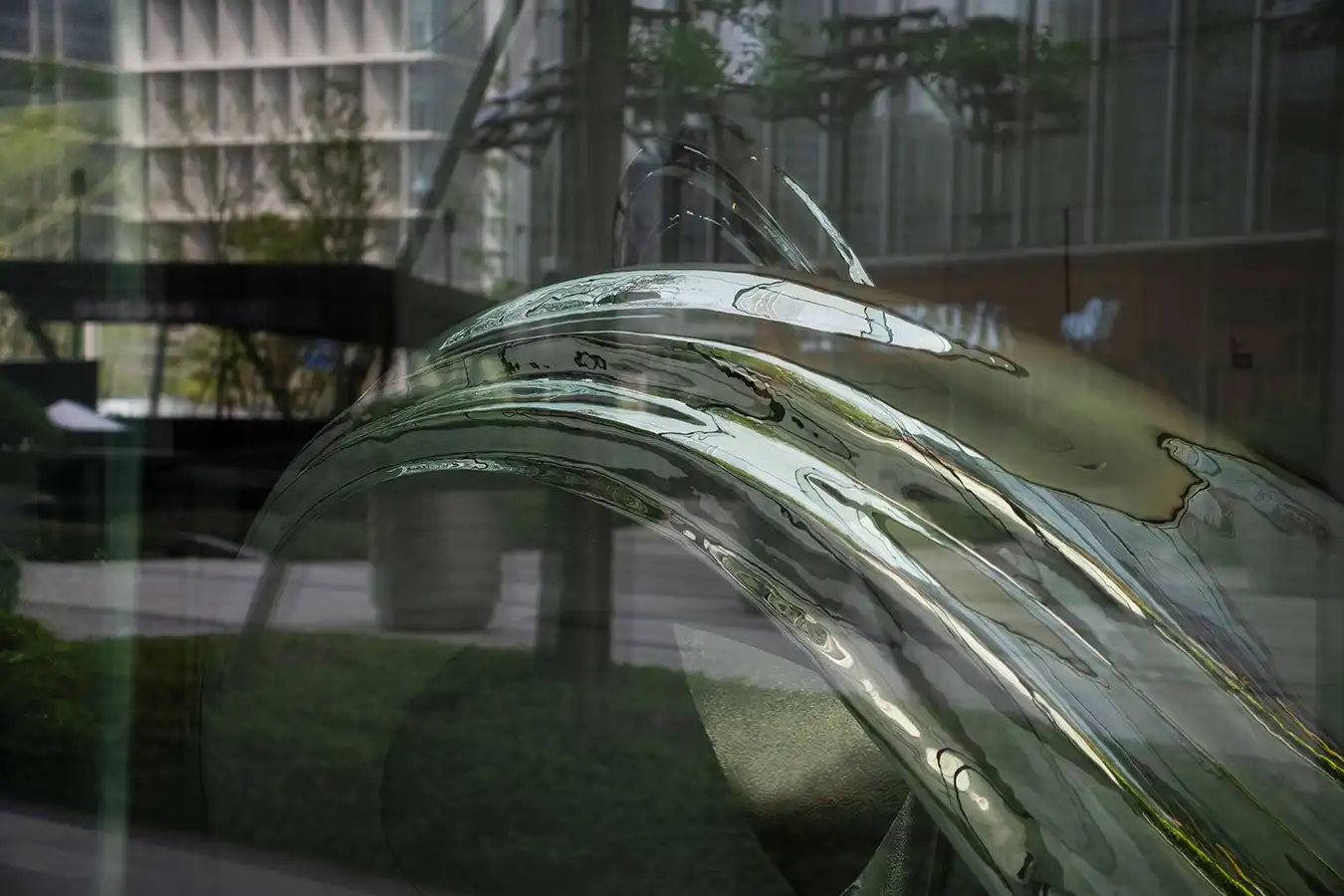 我们将无形的情感纽带——友爱之暖、共情之弦,凝练为抽象的艺术符号:双生交织的无限心环。这不仅是形态的创造,更是城市脉搏、自然呼吸与人文温度在金茂场域中的共生交响。