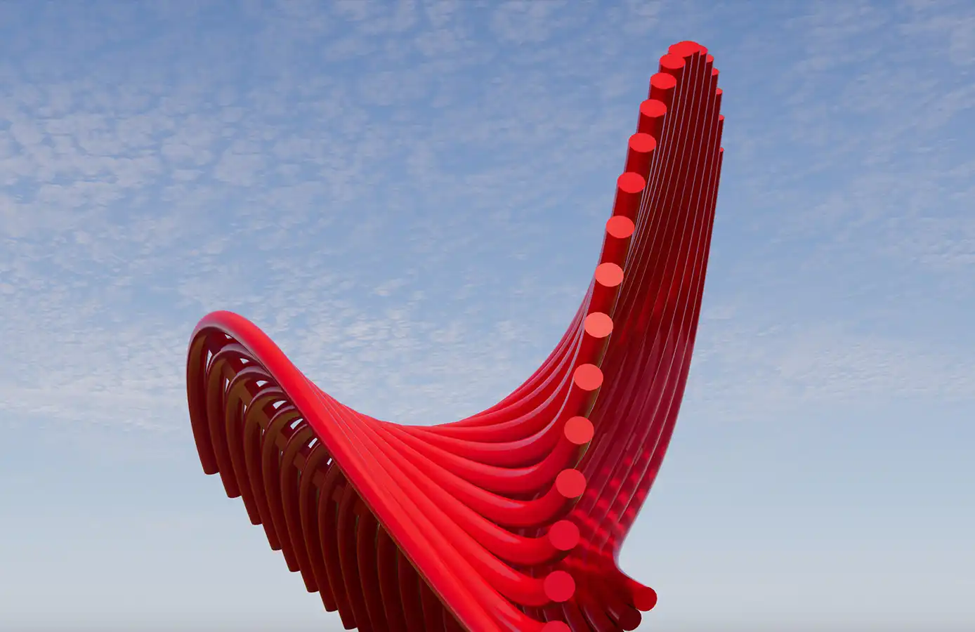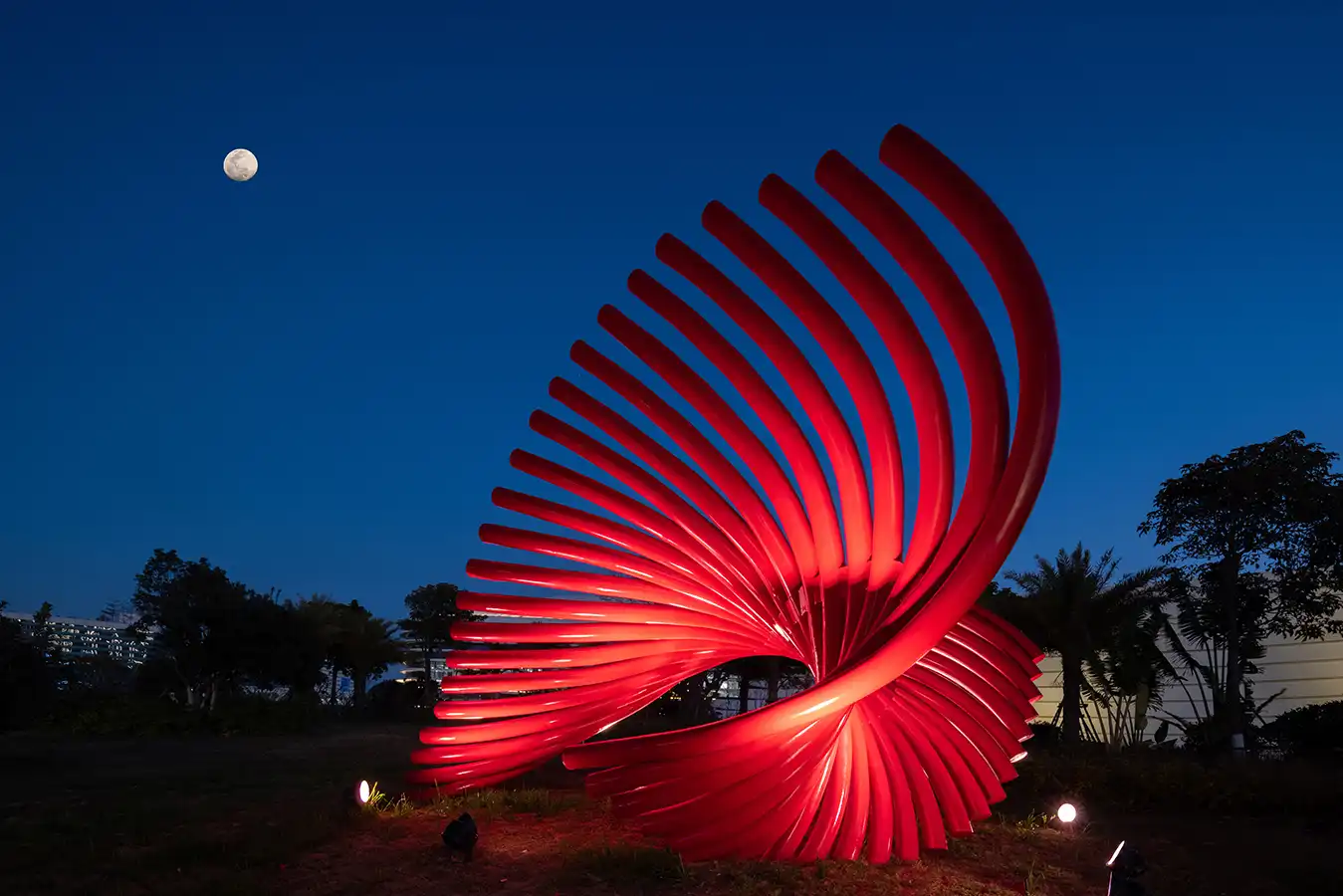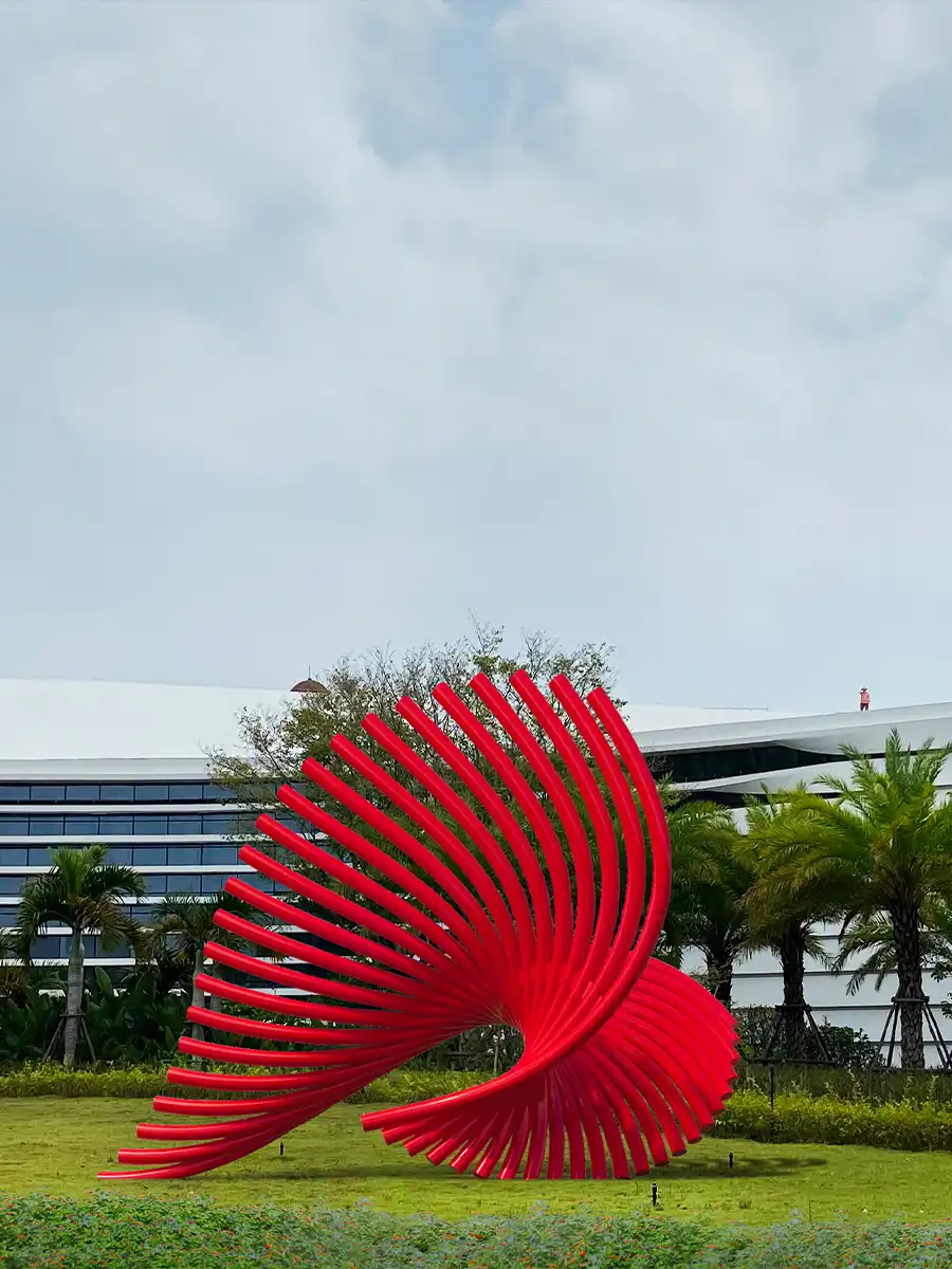 Symbiosis and co-prosperity ardent yearning; harmonious singing is sung in the Straits New Bank. The melody spirals up from the ground; it is a passionate ocean dance. The work uses rhythmic curves to form a unique dance posture. The melody spirals from the ground up, presenting the form of waves, reflecting the beauty of the ocean, and implying the harmonious scene of the co-prosperity and dancing of the two sides of the strait.