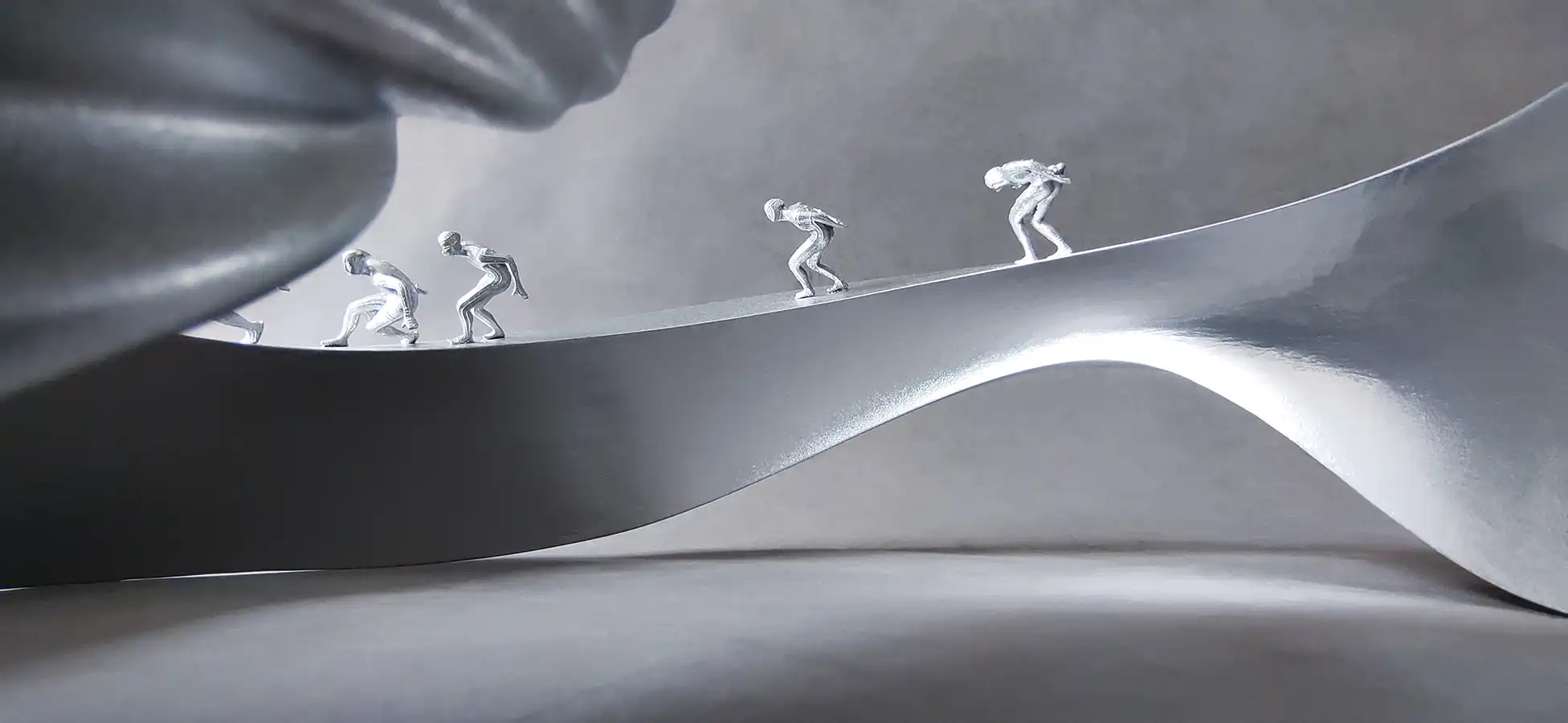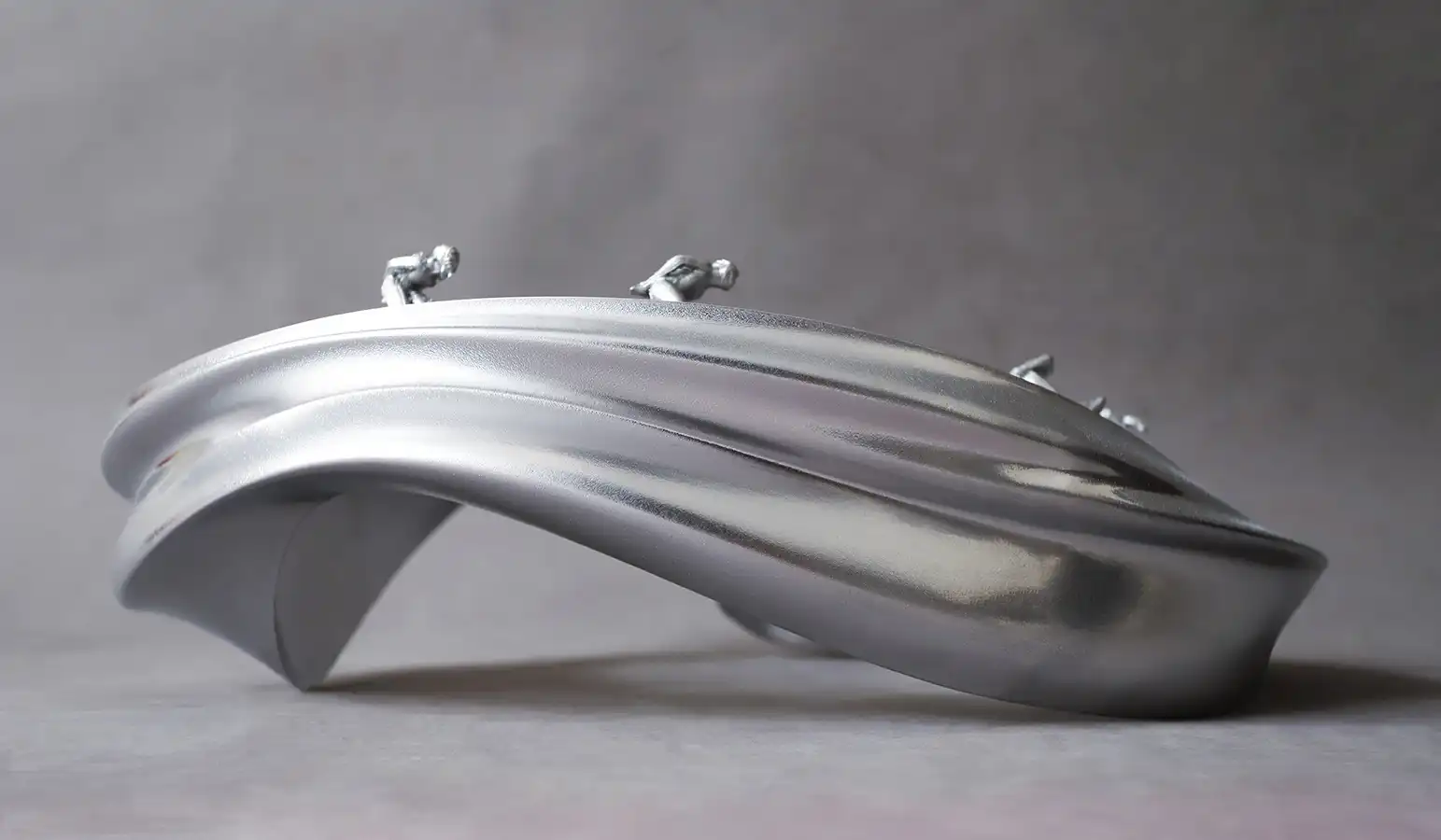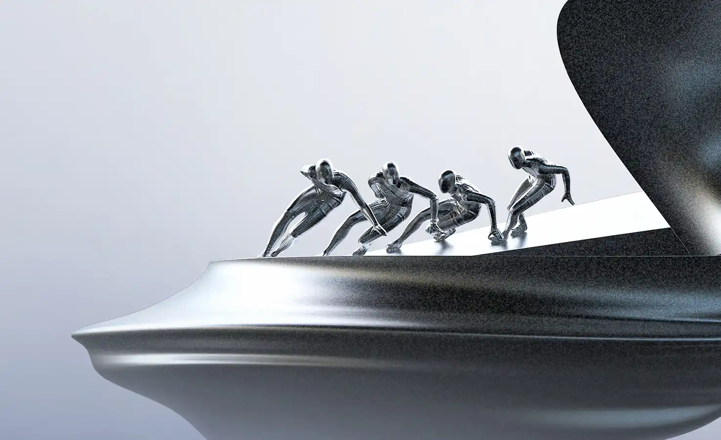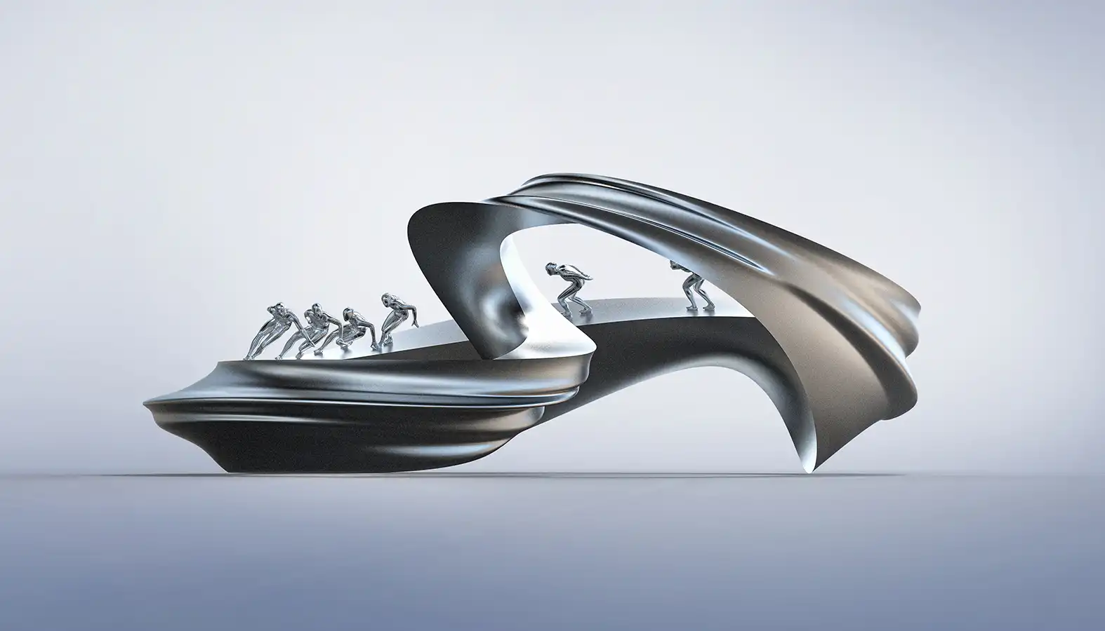 作品创作将速滑运动员与冰丝带融为一体,运动员如流星般轻盈飞驰,展现奥运精神的传承不息。